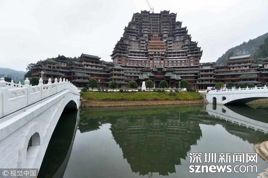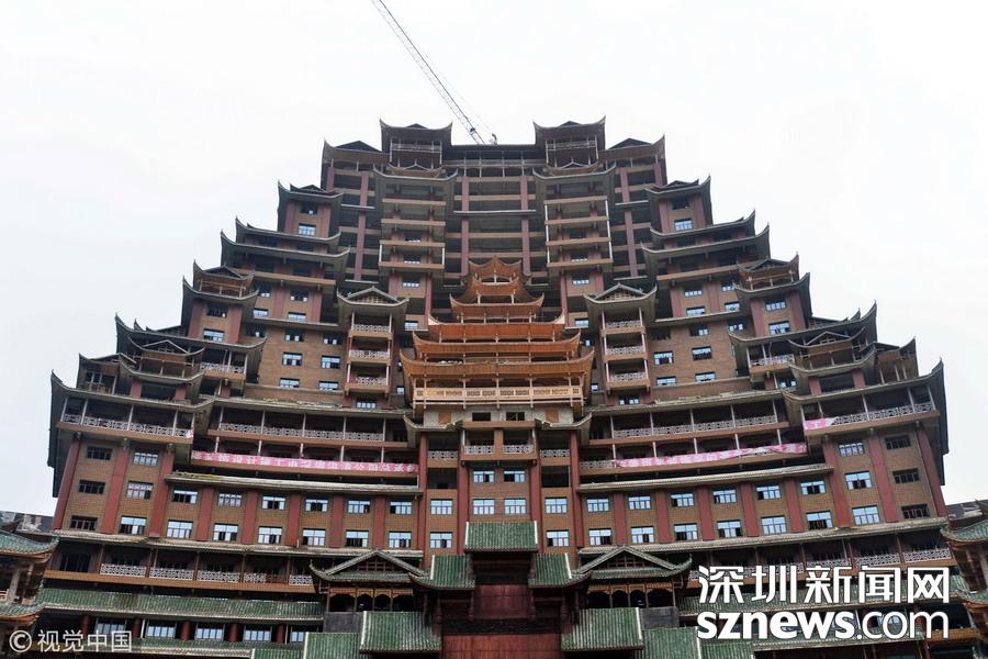 深圳新網(wǎng)網(wǎng)訊 始建于2016年9月的貴州省獨(dú)山縣水司樓已進(jìn)入工程收尾階段。雄偉壯麗造型別致的水司樓,是集會展博覽、酒店住宿、游覽觀光等于一體的大型綜合體。除具有水族特色元素外,該建筑還融合了苗族、布依族特色,是獨(dú)山縣凈心谷景區(qū)最具標(biāo)志性的宏大建筑。該樓占地面積5900平方米,總建筑面積60000平方米,樓高99.9米,共24層,是世界上最高大最大最壯觀的水族建筑,被稱為“天下第一水司樓”。 水司樓是按照水族依山畔水而居的傳統(tǒng)習(xí)俗和建筑特征修建,是水族人民的文化符號和智慧的象征,背靠凈心河谷山脊,以弧形的平面布局模式,如同張開懷抱的巨人,緊擁美麗的姻脂河灣,設(shè)計(jì)巧妙,工藝精巧。