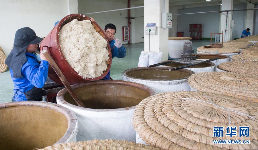 11月21日,工作人員在紹興女兒紅釀酒有限公司釀酒廠房將剛煮熟的糯米落缸。 浙江紹興一帶有“生女釀好酒、婚嫁宴賓客”的習俗,所釀之酒稱“女兒紅”。在紹興市上虞區(qū)東關(guān)街道,一家釀酒廠仍保留著傳統(tǒng)的黃酒生產(chǎn)線,恪守著近20道釀造工序,延續(xù)著傳統(tǒng)黃酒的釀制技藝和生女必釀“女兒紅”的文化習俗。 黃酒是中國最古老的酒種之一,傳統(tǒng)黃酒僅在冬季取鑒湖水和糯米釀制,所得之酒澄澈馥郁。 新華社記者翁忻旸攝