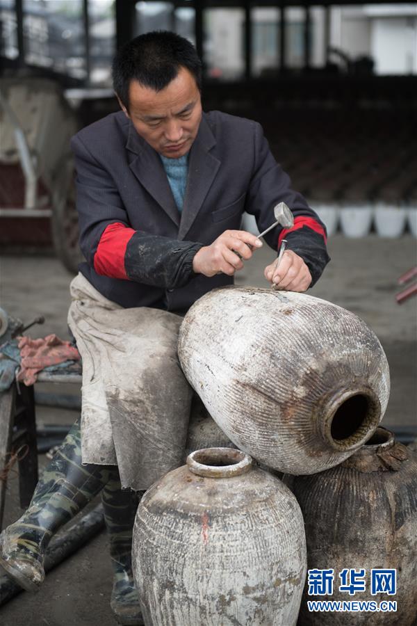 11月21日,一名鋦匠在紹興女兒紅釀酒有限公司修補(bǔ)黃酒壇。 浙江紹興一帶有“生女釀好酒、婚嫁宴賓客”的習(xí)俗,所釀之酒稱“女兒紅”。在紹興市上虞區(qū)東關(guān)街道,一家釀酒廠仍保留著傳統(tǒng)的黃酒生產(chǎn)線,恪守著近20道釀造工序,延續(xù)著傳統(tǒng)黃酒的釀制技藝和生女必釀“女兒紅”的文化習(xí)俗。 黃酒是中國最古老的酒種之一,傳統(tǒng)黃酒僅在冬季取鑒湖水和糯米釀制,所得之酒澄澈馥郁。 新華社記者翁忻旸攝