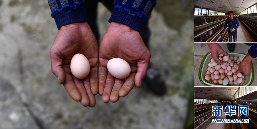 拼版照片:左圖為貧困戶李先強(qiáng)手捧養(yǎng)殖合作社生產(chǎn)的雞蛋(11月19日攝);右圖為李先強(qiáng)在雞舍里撿雞蛋(照片均攝于11月19日)。李先強(qiáng)是融水苗族自治縣香粉鄉(xiāng)香粉村的貧困戶,從2016年開始,他和15個貧困戶一起發(fā)展土雞養(yǎng)殖。目前合作社養(yǎng)有3000多只雞,年產(chǎn)雞蛋1萬多斤。 廣西融水苗族自治縣是國家扶貧工作重點(diǎn)縣,全縣“九山半水半分田”,生活生產(chǎn)環(huán)境較為惡劣,脫貧攻堅(jiān)任務(wù)艱巨,目前還有7.68萬貧困人口。面對經(jīng)濟(jì)發(fā)展落后、貧困面廣且程度深的現(xiàn)狀,當(dāng)?shù)匕衙撠毠?jiān)與創(chuàng)新產(chǎn)業(yè)扶持相結(jié)合,依托生態(tài)資源優(yōu)勢,實(shí)施“特色產(chǎn)業(yè)富民行動”,通過發(fā)展特色民族旅游、林下經(jīng)濟(jì)和特色養(yǎng)殖業(yè)等扶貧產(chǎn)業(yè),帶動貧困群眾依靠勤勞的雙手,拔窮根摘窮帽,實(shí)現(xiàn)脫貧致富。據(jù)了解,目前全縣貧困戶參與特色產(chǎn)業(yè)發(fā)展的有2.9萬戶,扶貧產(chǎn)業(yè)覆蓋率達(dá)95%。 新華社記者 黃孝邦 攝
