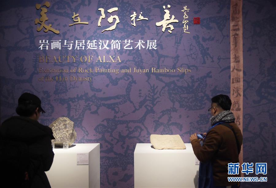 當(dāng)日,“美在阿拉善——巖畫與居延漢簡藝術(shù)展”在北京中國美術(shù)館開幕,共展出巖畫實物、雕塑、拓片、漢簡等共計100多件。 新華社記者 魯鵬 攝