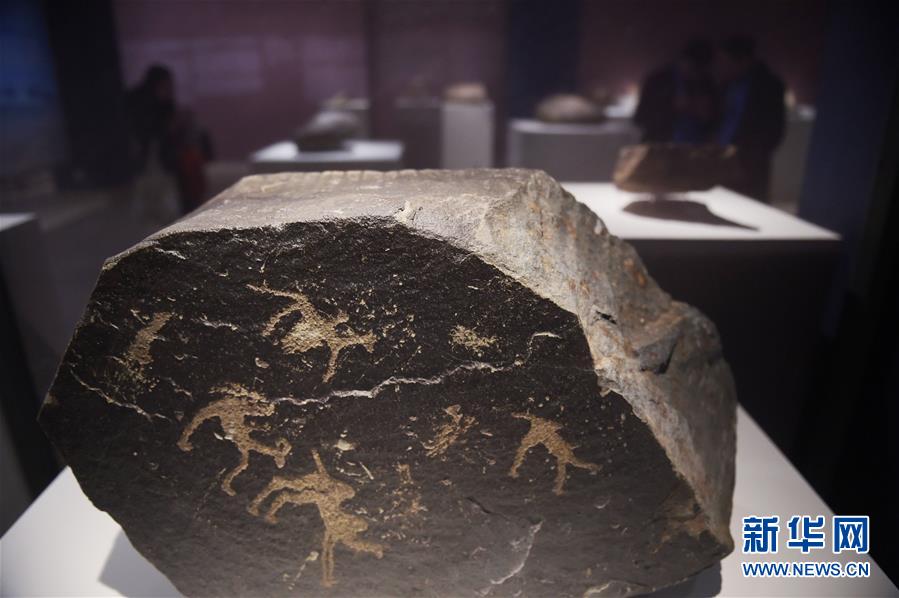 這是在中國美術(shù)館展出的展品“西夏騎者與駱駝巖畫”(11月21日攝)。新華社記者 魯鵬 攝