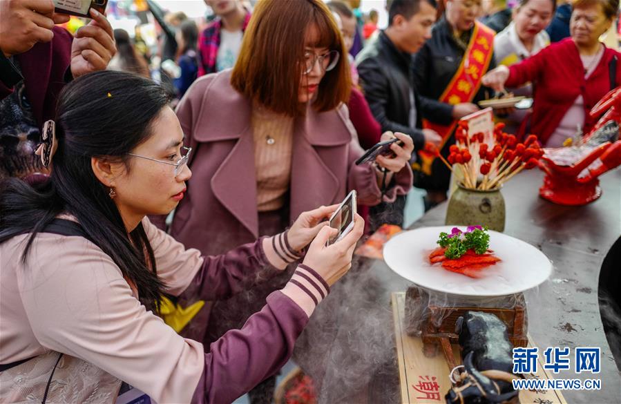 10月19日,重慶火鍋美食文化節(jié)現(xiàn)場(chǎng)展出的各色火鍋菜品吸引眾人拍攝。 當(dāng)日,第十屆中國(guó)(重慶)火鍋美食文化節(jié)在重慶市江北區(qū)正式開幕。本屆火鍋美食文化節(jié)為期4天,以“麻辣happy城市節(jié)日”為主題,50000平方米的展區(qū)吸引了70余個(gè)火鍋品牌、300余家火鍋供應(yīng)鏈企業(yè)參展,萬(wàn)人同燙火鍋的盛況在“火鍋之都”重慶再現(xiàn)。 新華社記者 劉潺 攝