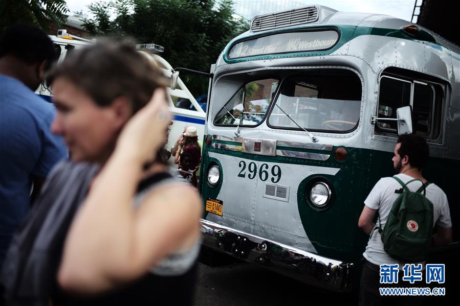 當(dāng)日,由紐約交通博物館主辦的第25屆紐約巴士節(jié)在布魯克林舉行,十余輛巴士敞開車門,向民眾展示了紐約地面公共交通工具80多年來(lái)的變遷。