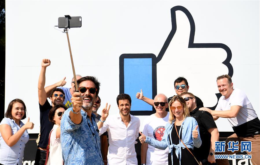 8月11日,在美國(guó)舊金山灣區(qū),參加“臉書節(jié)”的游客在臉書園區(qū)標(biāo)志前合影。當(dāng)日,舊金山灣區(qū)臉書園區(qū)舉行“臉書節(jié)”,人們?cè)诨顒?dòng)中欣賞文藝表演,品嘗美食,乘坐游樂(lè)設(shè)施等,活動(dòng)收入將捐給慈善團(tuán)體。新華社記者吳曉凌攝