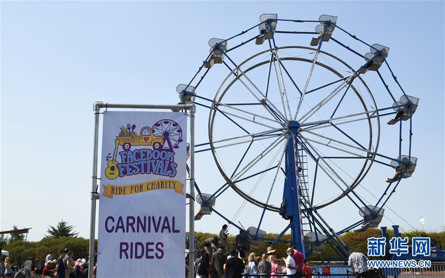 8月11日,在美國(guó)舊金山灣區(qū),人們?cè)凇澳槙?jié)”游戲區(qū)乘坐摩天輪。當(dāng)日,舊金山灣區(qū)臉書園區(qū)舉行“臉書節(jié)”,人們?cè)诨顒?dòng)中欣賞文藝表演,品嘗美食,乘坐游樂(lè)設(shè)施等,活動(dòng)收入將捐給慈善團(tuán)體。新華社記者吳曉凌攝