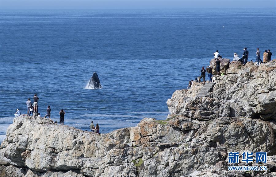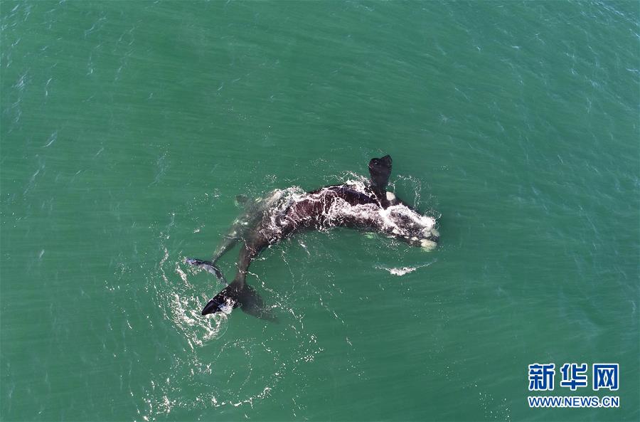 9月30日,在南非赫曼紐斯小鎮(zhèn)附近海面上,南露脊鯨在海岸邊暢游。9月29日,位于開普敦以東約115公里的赫曼紐斯小鎮(zhèn)迎來(lái)2018年的鯨魚節(jié),來(lái)自世界各地的游客可乘船出海觀鯨,也可在岸邊等待鯨魚的到來(lái)。新華社記者陳誠(chéng)攝