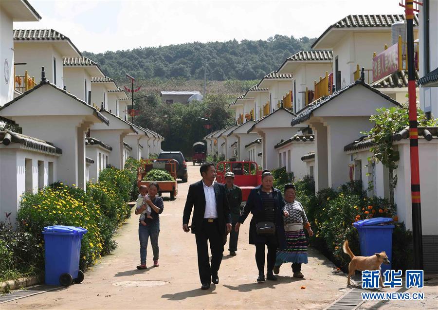 10月6日,在尋甸回族彝族自治縣塘子街道小海村,人們行走在村道上。國(guó)慶節(jié)期間,云南省尋甸回族彝族自治縣塘子街道小海村一片喜慶祥和。人們身著節(jié)日盛裝,載歌載舞,歡慶搬入新居后的第一個(gè)國(guó)慶節(jié)。新華社記者楊宗友攝