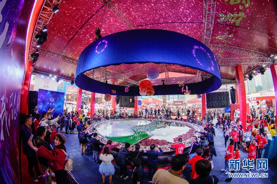 10月19日在重慶拍攝的火鍋美食文化節(jié)現(xiàn)場(chǎng)。 當(dāng)日,第十屆中國(guó)(重慶)火鍋美食文化節(jié)在重慶市江北區(qū)正式開幕。本屆火鍋美食文化節(jié)為期4天,以“麻辣happy城市節(jié)日”為主題,50000平方米的展區(qū)吸引了70余個(gè)火鍋品牌、300余家火鍋供應(yīng)鏈企業(yè)參展,萬(wàn)人同燙火鍋的盛況在“火鍋之都”重慶再現(xiàn)。 新華社記者 劉潺 攝