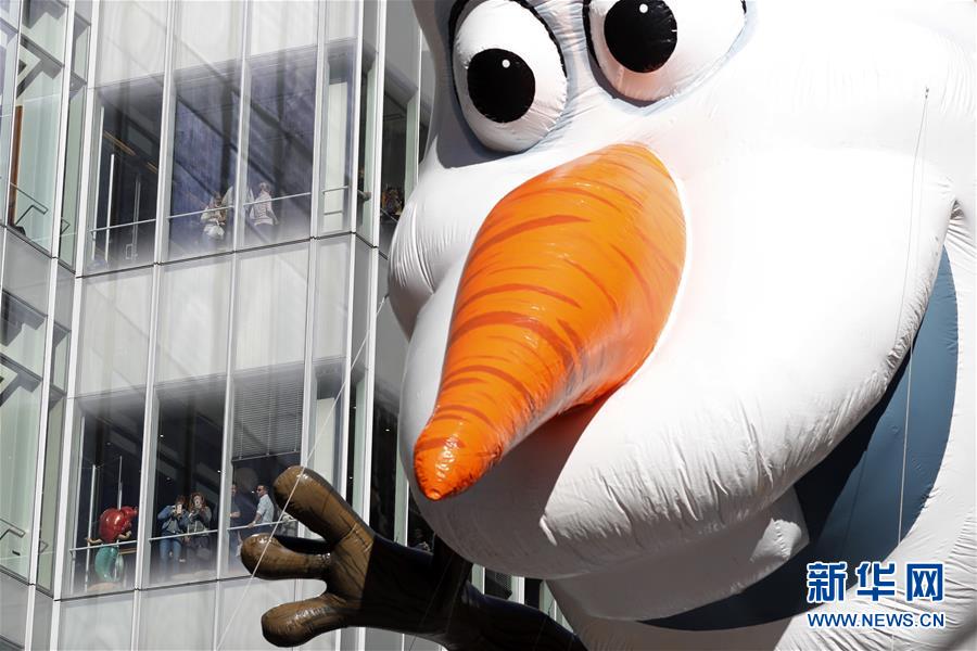 當(dāng)日,第92屆梅西感恩節(jié)大游行在紐約舉行,各式各樣的玩偶?xì)馇?、花車?duì)伍在曼哈頓的摩天大樓間穿行,吸引數(shù)百萬(wàn)民眾前來(lái)觀看。梅西感恩節(jié)大游行始于1924年,是全美規(guī)模最大的感恩節(jié)游行。