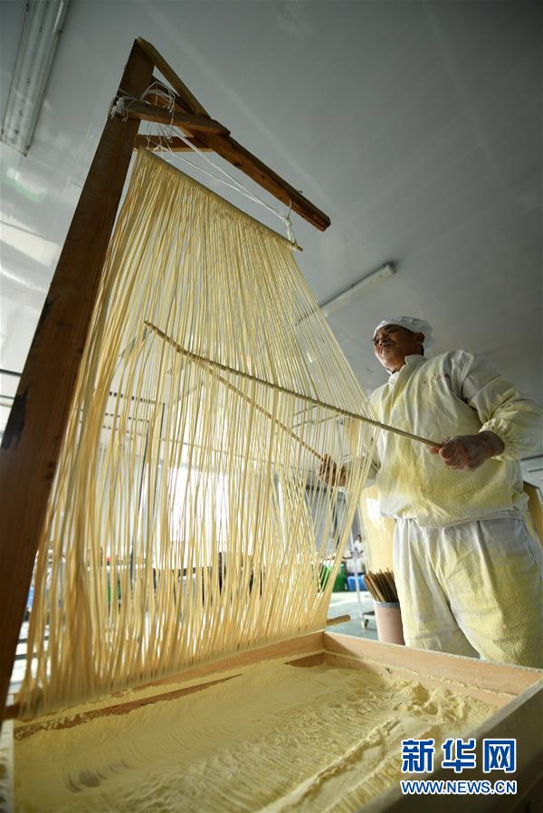 河北石家莊的藁城宮面歷史悠久,因曾進貢清朝皇宮而得名。宮面采用手工制作,整個生產(chǎn)過程包括和面、開條、盤條、上軸、分面等十幾道工序,以“面細能穿針,空心有韌性”為特色,食用方便,營養(yǎng)豐富。藁城宮面制作技藝于2013年入選河北省級非物質(zhì)文化遺產(chǎn)名錄。