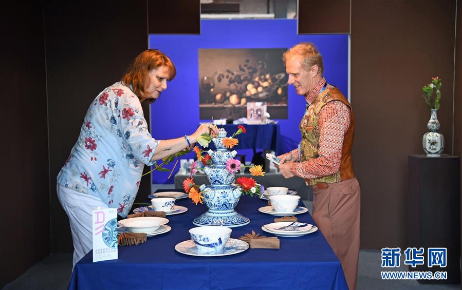在中國(guó)景德鎮(zhèn)國(guó)際陶瓷博覽會(huì)的現(xiàn)場(chǎng),來自荷蘭的參展商正在布置展臺(tái)(10月18日攝)。 新華社記者 萬象 攝