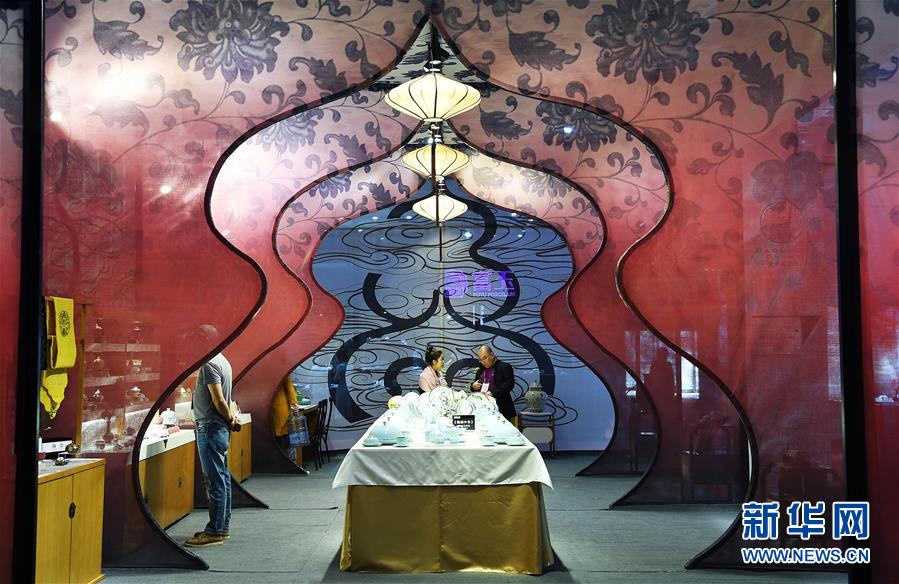 參觀者正在中國(guó)景德鎮(zhèn)國(guó)際陶瓷博覽會(huì)參觀(10月18日攝)。 新華社記者 萬象 攝