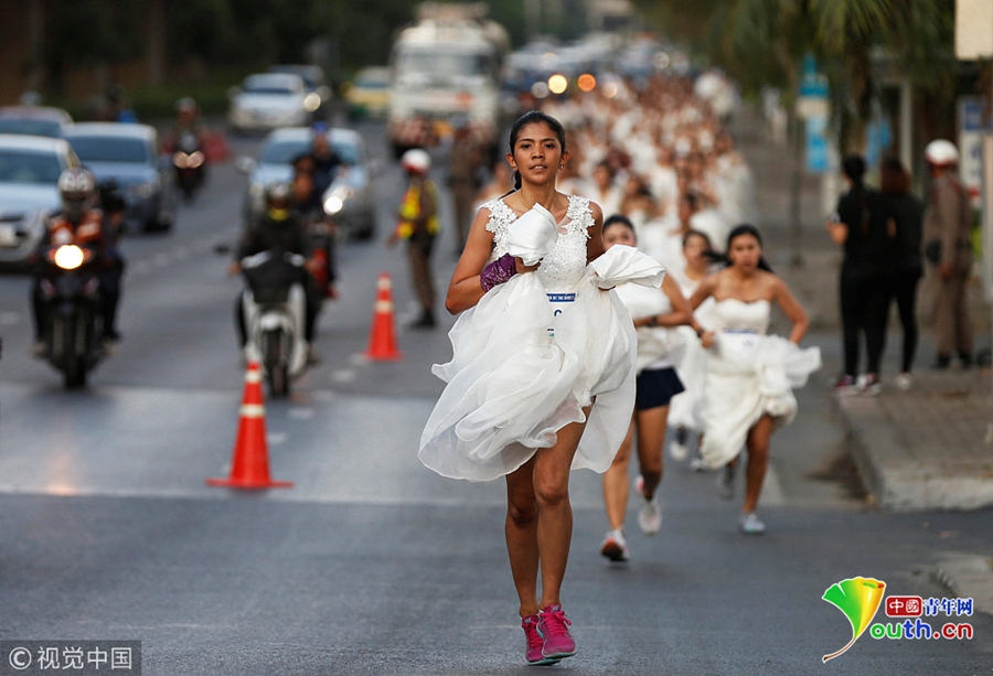 泰國(guó)新娘賽跑爭(zhēng)免費(fèi)婚禮 新娘街頭提裙狂奔