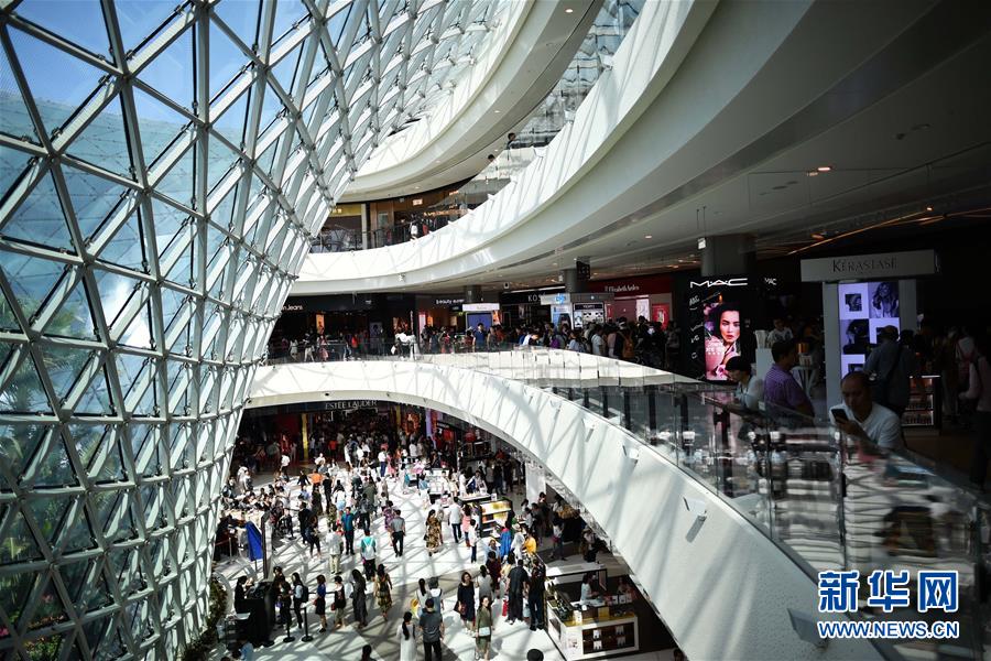 在海南三亞國(guó)際免稅城內(nèi),顧客在游覽、購(gòu)物(2月18日攝)。 新華社記者 郭程 攝