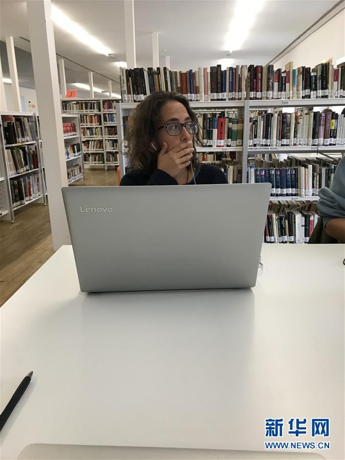 2018年10月29日,一名市民在西班牙馬德里孔德·杜克圖書(shū)館內(nèi)使用聯(lián)想電腦。新華社記者郭求達(dá)攝