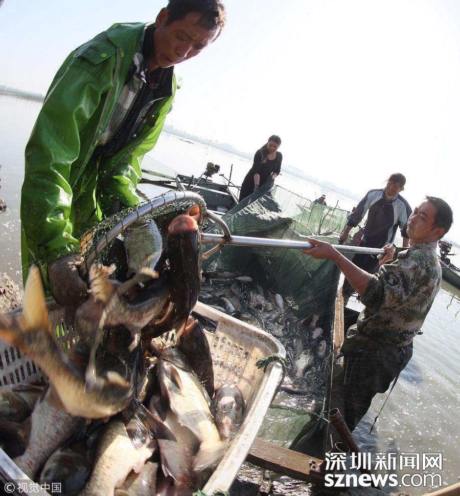 深圳新聞網(wǎng)訊 江蘇揚州,邗江區(qū)公道鎮(zhèn)南湖村南湖水域,專業(yè)捕撈隊人員已集結到胡登強養(yǎng)殖戶家魚塘進行捕撈作業(yè)。據(jù)捕撈隊員沈昌田介紹,近期隨氣溫轉冷,魚的銷量增加,水產(chǎn)養(yǎng)殖戶紛紛捕魚上市,為趕在上午10時將魚運到水產(chǎn)批發(fā)市場銷售,專業(yè)捕撈隊員們天不亮就起床,下河塘布圍網(wǎng)、收網(wǎng)撈魚、過秤裝車。一周捕撈作業(yè)有三四次之多,一次捕撈多達上萬斤魚。公道鎮(zhèn)有水面灘涂6.5萬畝,是魚、蝦、蟹、等水產(chǎn)品養(yǎng)殖的理想場所。
