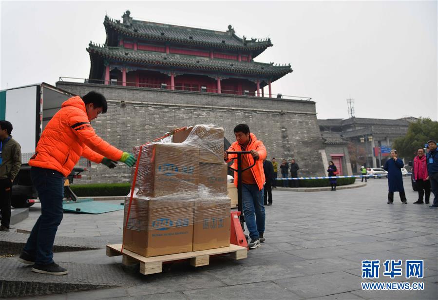 搬遷文物被護(hù)送出孔府文物檔案館(11月20日攝)。 11月26日,耗時(shí)5年建成的孔子博物館在孔子故里山東曲阜開館試運(yùn)行,首批2000多件文物搬出孔府文物檔案館,入住孔子博物館,今后將有69萬多件孔府文物逐批“喬遷新居”。 新華社記者 朱崢 攝