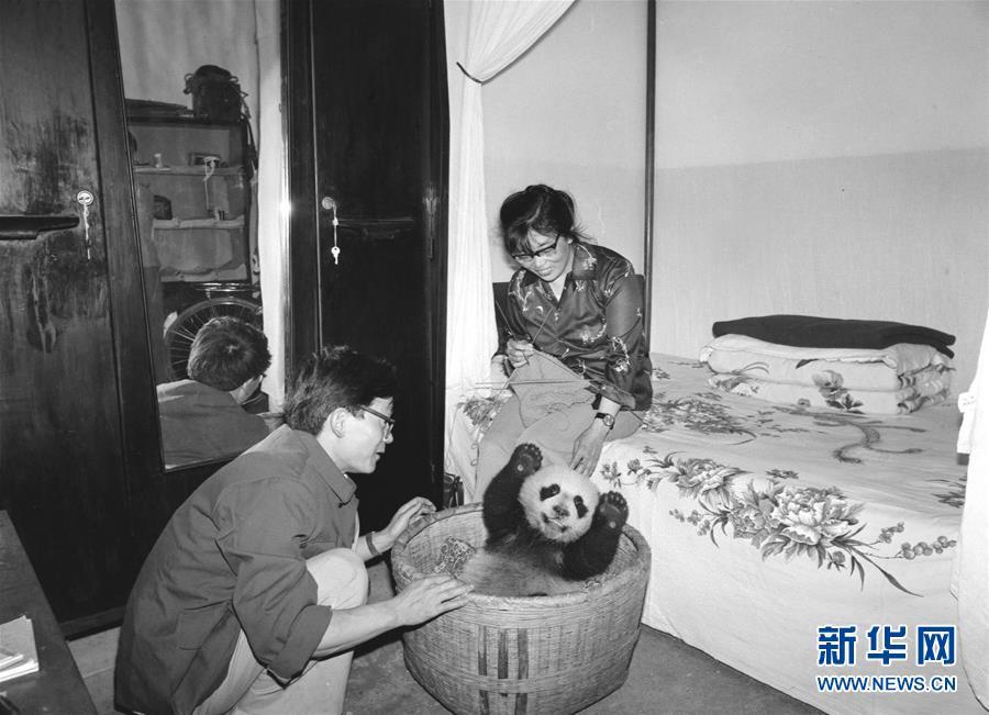 新華社記者金勖琪1984年拍攝的四川平武縣林業(yè)局的助理工程師鐘肇敏(左)一家把一頭受病餓威脅的熊貓幼仔“龍龍”收留在家里精心喂養(yǎng)。大熊貓,古老的物種,世界級“萌寵”。有一位84歲的老人,四十年前曾身挎相機(jī)與熊貓親密接觸六年多,公開發(fā)表了一千多張熊貓照片,把熊貓介紹給全球的讀者,被國內(nèi)外的朋友親切地稱為“熊貓小姐”。她就是金勖琪,新華社第一代熊貓攝影師。新華社記者 張超群 攝