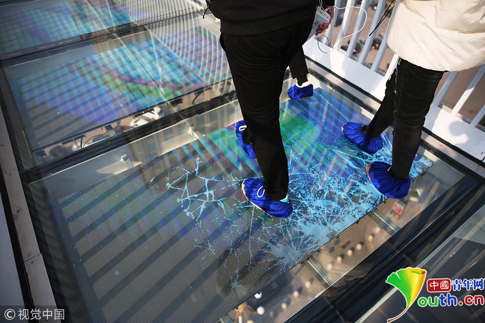 2018年11月28日,石家莊市區(qū)內的一座玻璃吊橋在網(wǎng)絡上走紅,游客們置身于透明的玻璃吊橋上,望著地面川流不息的車輛,伴隨玻璃破裂的特效聲,不禁膽戰(zhàn)心驚。這座玻璃吊橋位于石家莊南二環(huán)附近,橋體橫跨塔通大街,長100米,高30米,。橋面由52塊特質玻璃構成,其中4塊為特效玻璃,游客腳踩上去就會發(fā)出玻璃破裂的聲音。