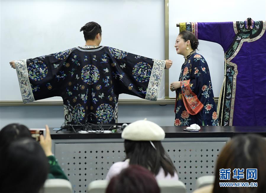 當(dāng)日,一場(chǎng)別開生面的清代古典服裝課在北京服裝學(xué)院舉行。古典美衣收藏家、服裝設(shè)計(jì)師畢紅攜帶她珍藏的清代女性傳統(tǒng)服裝精品來(lái)到北京服裝學(xué)院與師生見面。