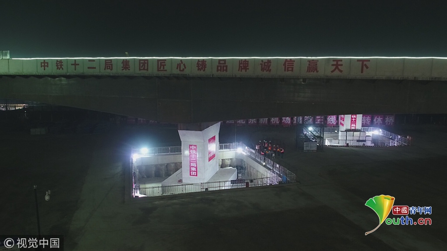2018年12月1日,北京,大興國(guó)際機(jī)場(chǎng)高速公路重要節(jié)點(diǎn)工程“三線四橋”同步轉(zhuǎn)體工程順利完成。機(jī)場(chǎng)配套交通“咽喉要道”的打通,標(biāo)志著大興國(guó)際機(jī)場(chǎng)高速公路全線主體基本建成,軌道交通新機(jī)場(chǎng)線地上段基本貫通。美立/視覺(jué)中國(guó)