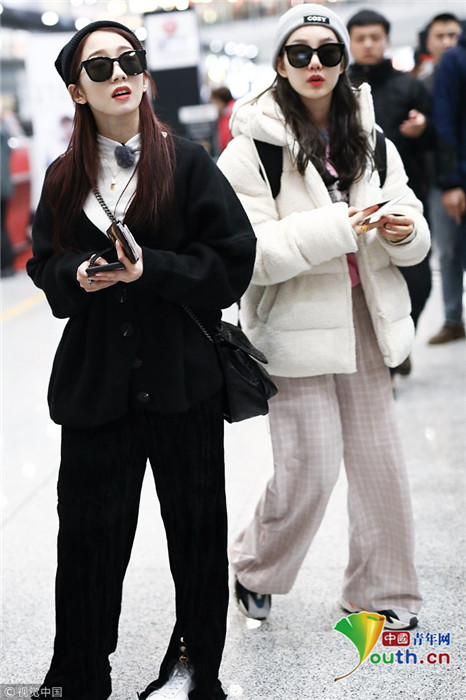 2018年12月3日,北京,“火箭少女101”全體成員現(xiàn)身機(jī)場前往國外錄制團(tuán)總綜。其中孟美岐戴著墨鏡,一身全黑運(yùn)動裝扮,大步流星氣場超強(qiáng),楊蕓晴、yamy、楊超越等成員緊隨其后,大家還一起在機(jī)場玩起自拍,好不歡樂。