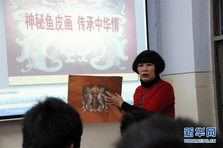 張琳在講授魚皮畫制作技藝(2011年12月4日攝)。國家級非物質文化遺產(chǎn)赫哲族魚皮制作技藝是我國赫哲族傳統(tǒng)手工藝術。作為這項技藝的黑龍江省級傳承人,十余年來,張琳一直從事魚皮畫的研究和創(chuàng)作,并通過做推廣、開講座、辦活動,讓更多年輕人了解并喜歡上這一傳統(tǒng)手工藝,將這項瀕臨失傳的藝術更好地傳承下去。新華社記者 王凱 攝
