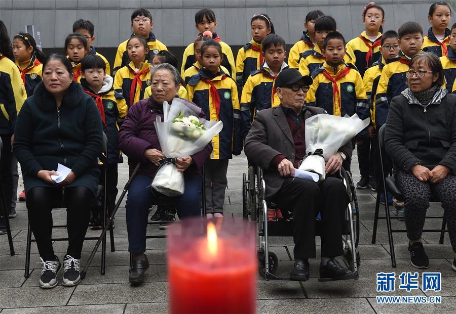 12月3日,南京大屠殺幸存者余昌祥(前排左三)、石秀英(前排左二)在家祭活動(dòng)現(xiàn)場。 當(dāng)日,在第五個(gè)南京大屠殺死難者國家公祭日到來之際,南京大屠殺死難者遺屬家祭活動(dòng)在侵華日軍南京大屠殺遇難同胞紀(jì)念館正式啟動(dòng)。首批前來開展家祭活動(dòng)的南京大屠殺幸存者余昌祥、石秀英老人分別率家屬在紀(jì)念館內(nèi)的死難者名單墻前獻(xiàn)花、敬香、跪拜,并誦讀家信,表達(dá)對親人的哀思。 新華社記者 孫參 攝