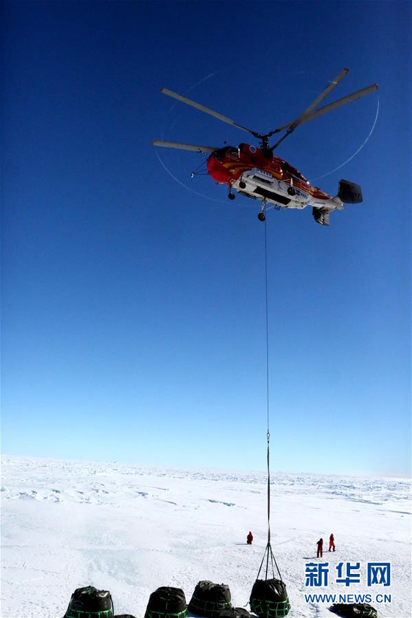搭載中國第35次南極科考隊的“雪龍”號極地考察船,日前到達距離中山站44公里處的陸緣冰區(qū)。經過緊張的冰上探路確定冰面卸貨路線后,一場“海陸空”全天候卸運物資的“戰(zhàn)役”在南極冰天雪地中打響。