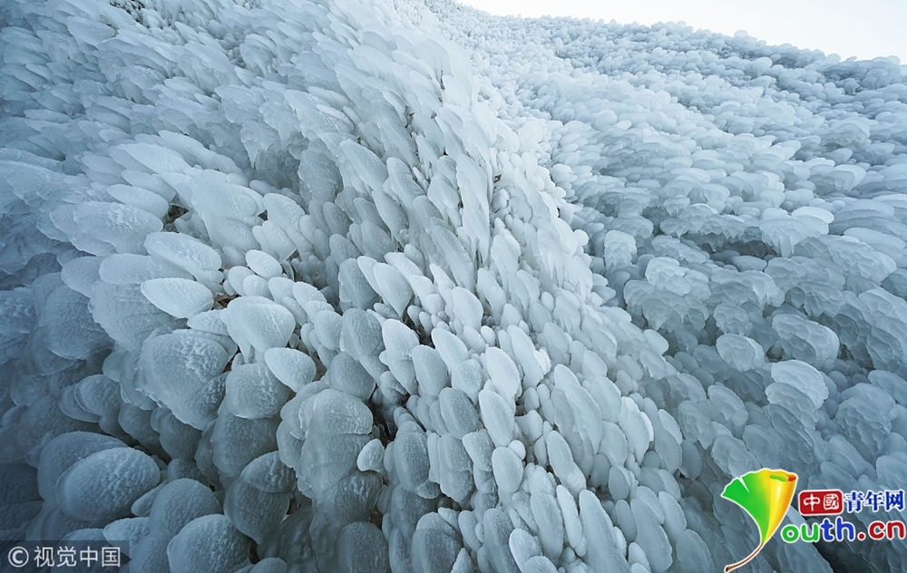 冰島瀑布結(jié)冰畫(huà)面震撼 如天外仙境