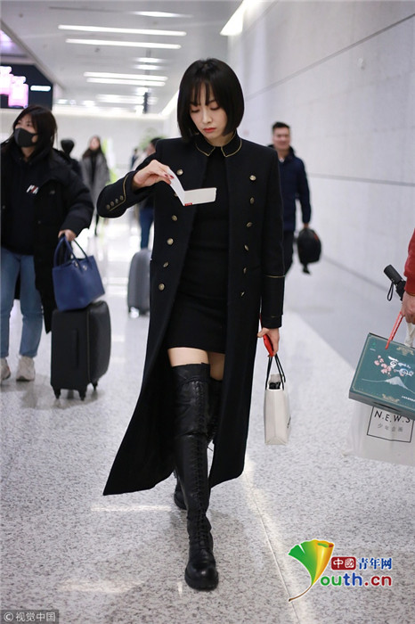 2018年12月6日,宋茜現(xiàn)身機場,從上海飛往北京。她換了時髦的新發(fā)型,身穿黑色短裙外塔長款風衣,配上一雙高筒靴,美腿隱現(xiàn)霸氣不失性感,半路獲粉絲送卡片翻來覆去認真品讀。