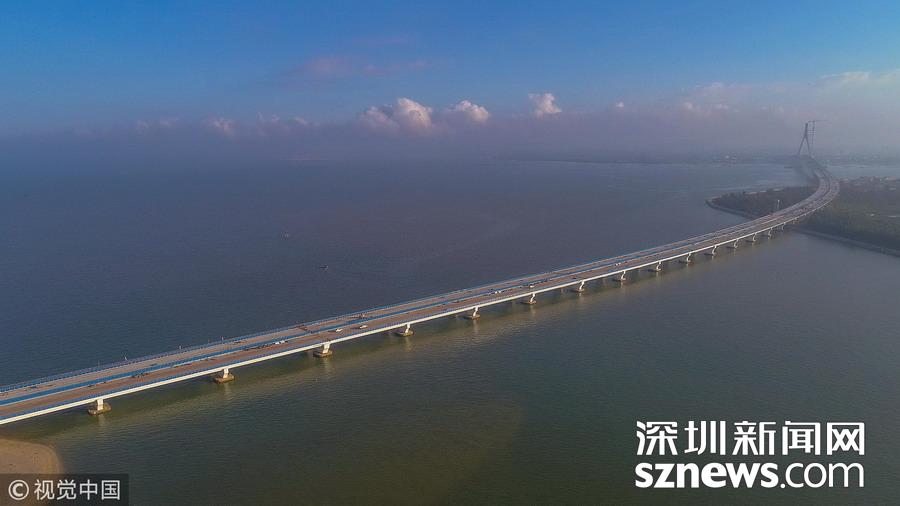 深圳新聞網(wǎng)訊 2018年12月5日,海口,高空航拍橫跨??诒备蹗u的鋪前大橋。 據(jù)了解,鋪前大橋是目前國內(nèi)抗震設(shè)防烈度最高、設(shè)計(jì)基本風(fēng)速最大,且跨越地震帶活動斷層的跨海大橋,是國內(nèi)首座跨地質(zhì)斷裂帶的大型橋梁。總投資約30.1億元,該將在今年年底建成通車,將加快海南自貿(mào)港建設(shè)而助力。