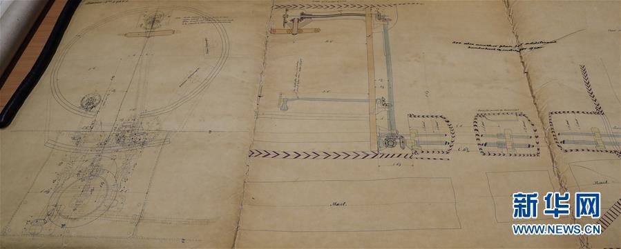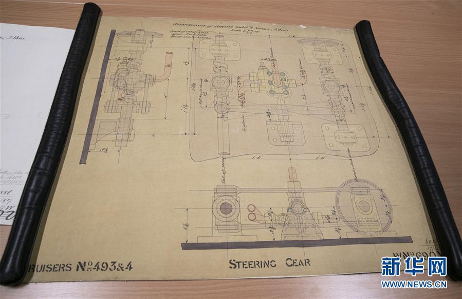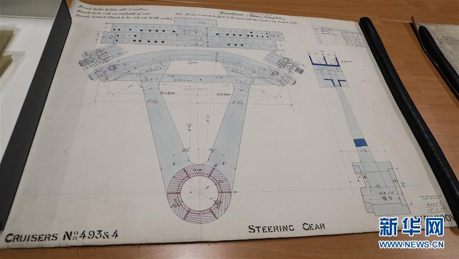 這是11月2日,在英國(guó)紐卡斯?fàn)柵臄z的橫跨在泰恩河上的紅白兩色的鋼鐵旋轉(zhuǎn)橋泰恩橋。當(dāng)年,致遠(yuǎn)艦就是從這里駛向大海,開(kāi)啟東方征程。 新華社記者日前在紐卡斯?fàn)柼┒鳌枡n案館查找北洋海軍史料時(shí)發(fā)現(xiàn)一套七張、檔案名為“中國(guó)巡洋艦舵機(jī)設(shè)計(jì)圖”的原始圖紙。塵封百年,甲午海戰(zhàn)中抗擊日艦后沉沒(méi)的清北洋海軍致遠(yuǎn)艦部分原廠(chǎng)設(shè)計(jì)圖紙?jiān)谄浣ㄔ斓亍?guó)紐卡斯?fàn)柺械囊患覚n案館首次被發(fā)現(xiàn),為打撈那段悲壯的歷史提供了重要參考。 新華社記者 韓巖 攝