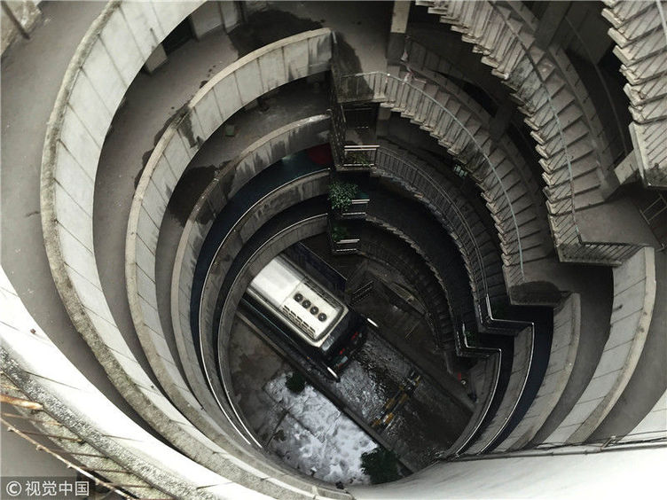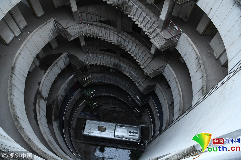 重慶洋人街景區(qū)內(nèi)的穿樓觀光索道吸引不少游客體驗(yàn)。據(jù)悉,跨度長(zhǎng)1000米的觀光索道將隨著洋人街的拆遷而搬離。中新社記者陳超 攝 2017年9月27日,重慶,南岸區(qū)某小區(qū)的“螺旋”停車場(chǎng),從公路到車庫(kù)要下5層樓,司機(jī)需要轉(zhuǎn)無(wú)數(shù)個(gè)360度圈。圖片來(lái)源:視覺中國(guó)