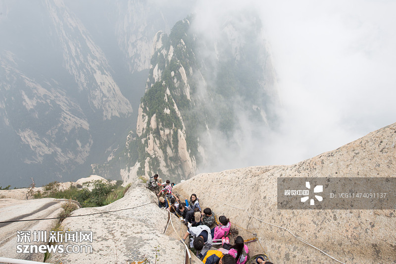 2015年09月18日,陜西渭南,西岳華山歷來(lái)被認(rèn)為是五岳之中最為險(xiǎn)峻的,而在華山中,險(xiǎn)中之險(xiǎn)莫過(guò)于“長(zhǎng)空棧道”和“鷂子翻身”。華山長(zhǎng)空棧道位于華山南峰東側(cè)山腰,是一條具有七百多年歷史的古棧道。棧道上下皆是懸崖絕壁由30多厘米寬的木板和條石搭成,下面是萬(wàn)丈深淵,僅靠一條鐵索作為抓手,被喻為“華山第一天險(xiǎn)”。
