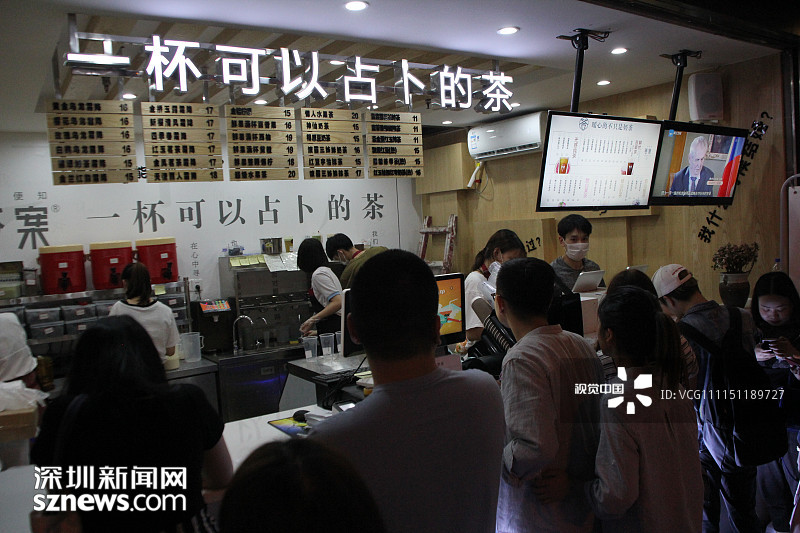 2018年4月21日,重慶,萬(wàn)達(dá)廣場(chǎng)附近有一家新開業(yè)的網(wǎng)紅答案茶的冷飲店,這家答案茶冷飲店人氣異?;鸨T前已排起了兩條“長(zhǎng)龍”。 |
