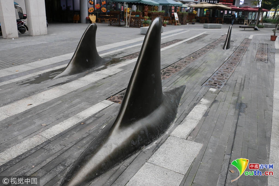 對(duì)于這種設(shè)計(jì),不少市民覺得比較精巧的,遠(yuǎn)遠(yuǎn)地望去,就好像在海面上露出魚鰭的一群鯊魚,不僅可以防止被車輛占道,而且還有點(diǎn)裝飾的效果。