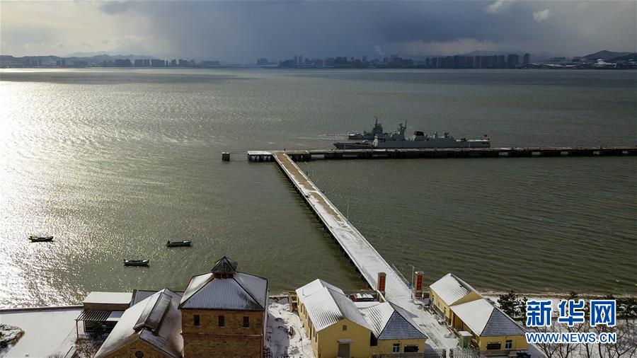 這是12月8日無人機(jī)拍攝的威海劉公島鐵碼頭。這里曾是北洋海軍的母港。  新華社記者郭緒雷攝