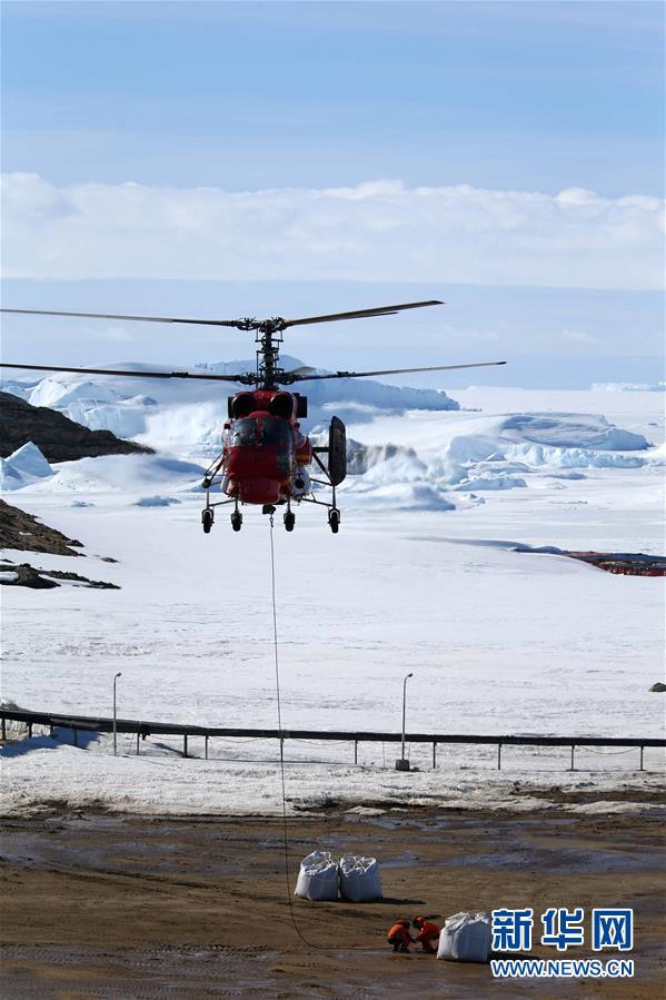 12月14日,直升機(jī)向南極中山站吊運(yùn)物資。