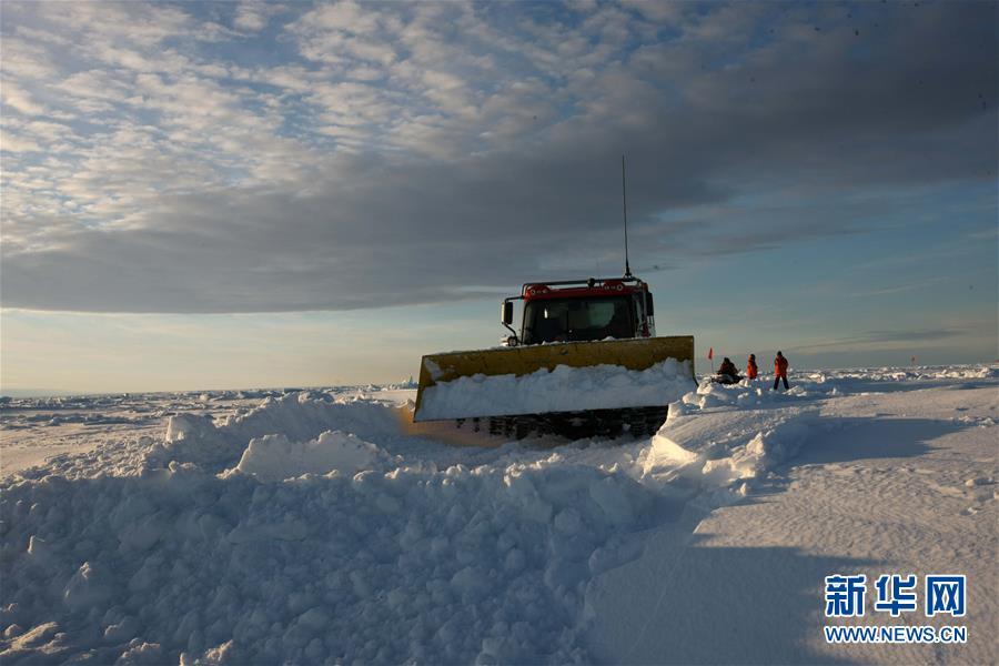 修路小組成員用雪地車裝備的鏟斗推平積雪(12月1日攝)。 搭載中國第35次南極科考隊(duì)的“雪龍”號(hào)極地考察船日前到達(dá)距離中山站44公里處的陸緣冰區(qū),準(zhǔn)備迎來本次南極科考首場(chǎng)攻堅(jiān)戰(zhàn)——物資卸運(yùn)。一支探冰小組隨即展開海冰探路,以期盡快打通從“雪龍”號(hào)到中山站的冰上運(yùn)輸線,盡早啟動(dòng)冰上運(yùn)貨。 新華社記者 劉詩平 攝