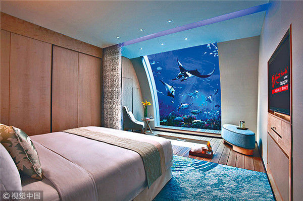 新加坡,圣淘沙名勝世界(Resorts World Sentosa),感受“上天下?!钡淖∷拮涛?。海洋館的深海奧秘生態(tài)區(qū)相連的特色套房。