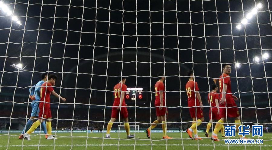 圖為2018年3月22日,中國隊球員在廣西南寧體育中心舉行的2018中國杯國際足球錦標(biāo)賽中以0比6不敵威爾士隊后離場的資料照片。 新華社記者曹燦攝