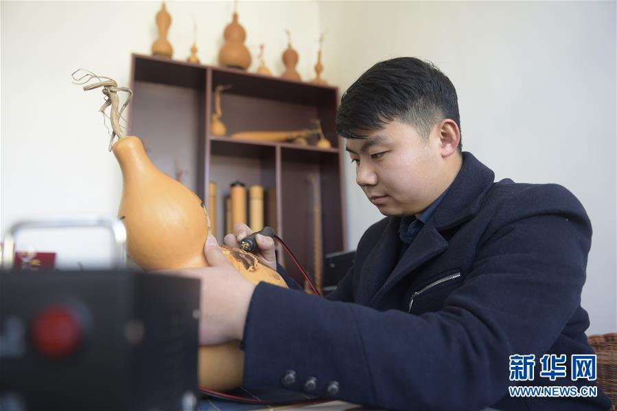 12月18日,劉征在自己的加工坊里加工葫蘆衍生品。 新華社記者 魯鵬 攝