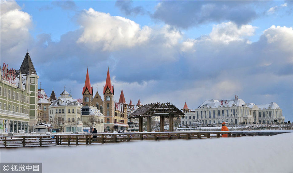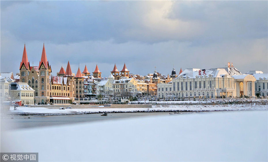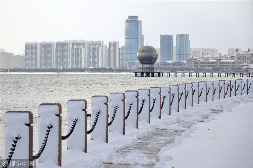 2018年12月7日,山東煙臺,雪后的海濱景色。當(dāng)日煙臺迎來今冬首場降雪,海濱建筑在大雪的裝點下,形成海濱城市獨有的美麗雪景。地處膠東半島的煙臺,冬季降雪量遠高于地理位置相近的其他地區(qū),形成了獨特的海濱雪城,是中國著名的“雪窩”。唐克/視覺中國
