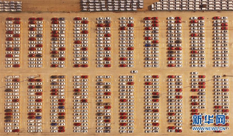 2018年8月20日,重慶果園港內(nèi)停放著等待運(yùn)輸?shù)钠嚒?大地之色,俯仰之間;壯美山河,是我的祖國。2018年,新華社記者操縱無人機(jī)“飛閱”華夏大地,在最美的時(shí)節(jié),定格下她的色彩斑斕。 新華社記者 王全超 攝