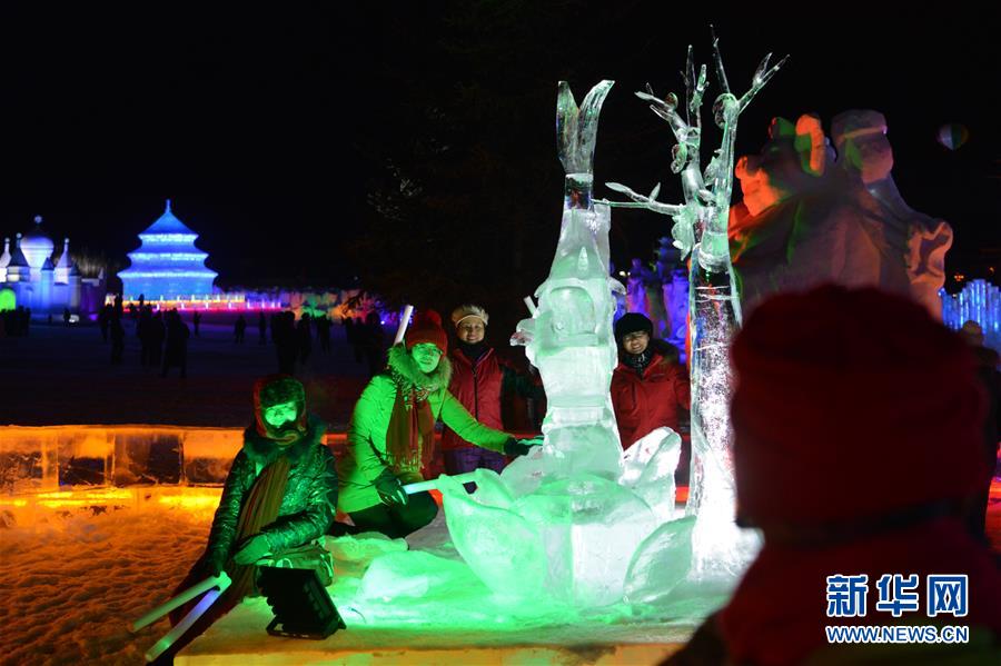 12月21日,游客在冰雪節(jié)開(kāi)幕式上參觀冰雕。新華社記者鄒予攝