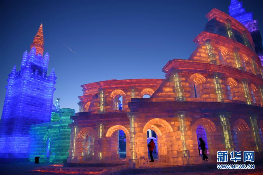 12月23日,游客在哈爾濱冰雪大世界園區(qū)游玩。 當日,第二十屆哈爾濱冰雪大世界開園迎客,向來自全世界的游客展現(xiàn)“流光溢彩”的冰雪奇觀。第二十屆哈爾濱冰雪大世界總占地面積60萬平方米,用冰量11萬立方米,用雪量12萬立方米。上百個景觀群、30余處互動娛樂項目及數(shù)百場精彩活動,構成了一場冰雪盛宴。 新華社記者王建威攝
