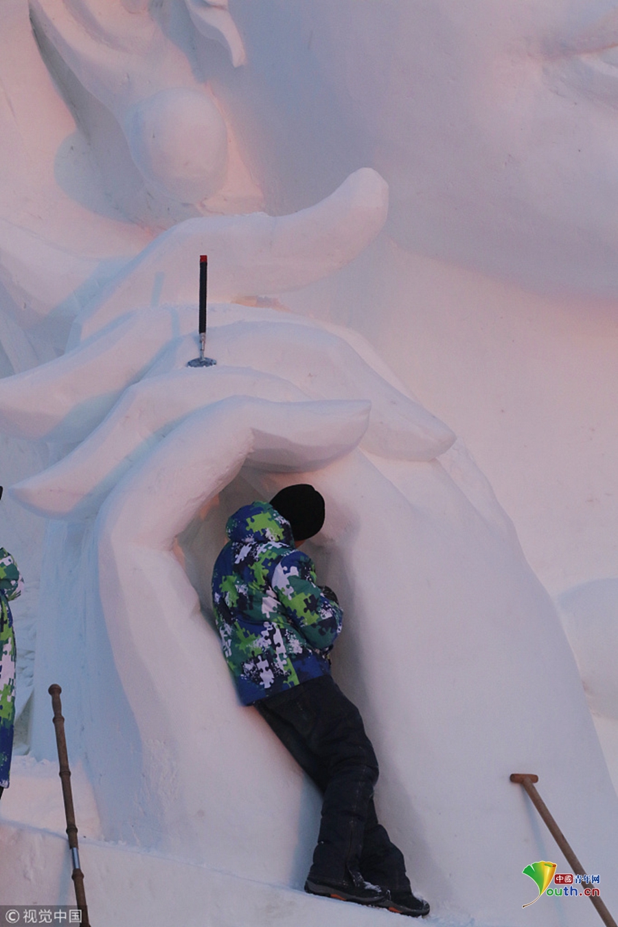 探秘哈爾濱太陽島雪博會:雪雕師精雕細刻建造忙