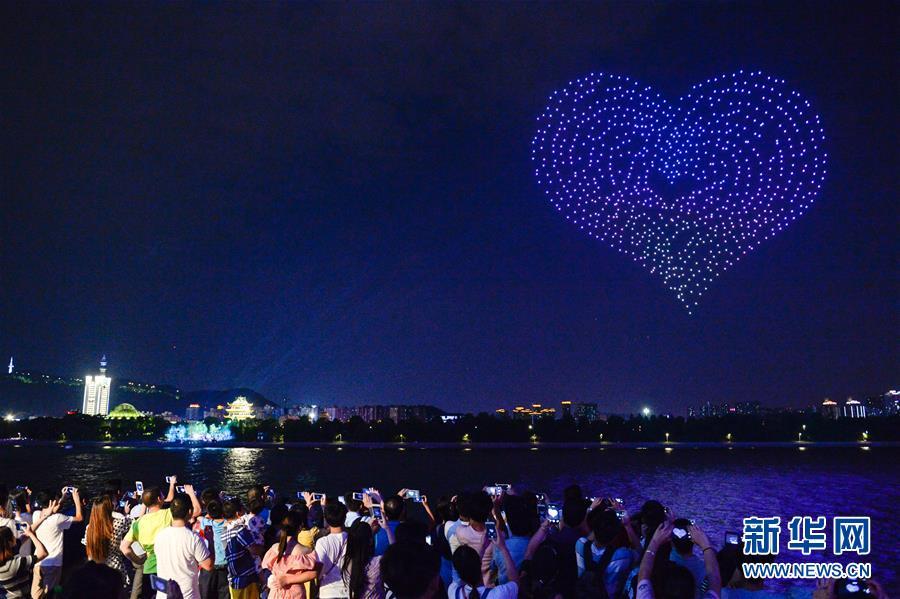 8月16日,無人機(jī)在湖南長沙橘子洲頭擺出愛心圖案。 在即將過去的2018年,各地攝影師用鏡頭記錄下四季中國。大江南北,一幅幅色彩斑斕的美麗畫卷徐徐展開。 新華社記者 張笑宇 攝